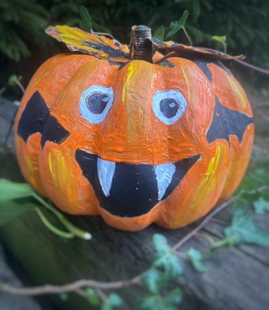 Paint a BIG Paper Mache Pumpkin & decorate a BIG Halloween Bat streamer